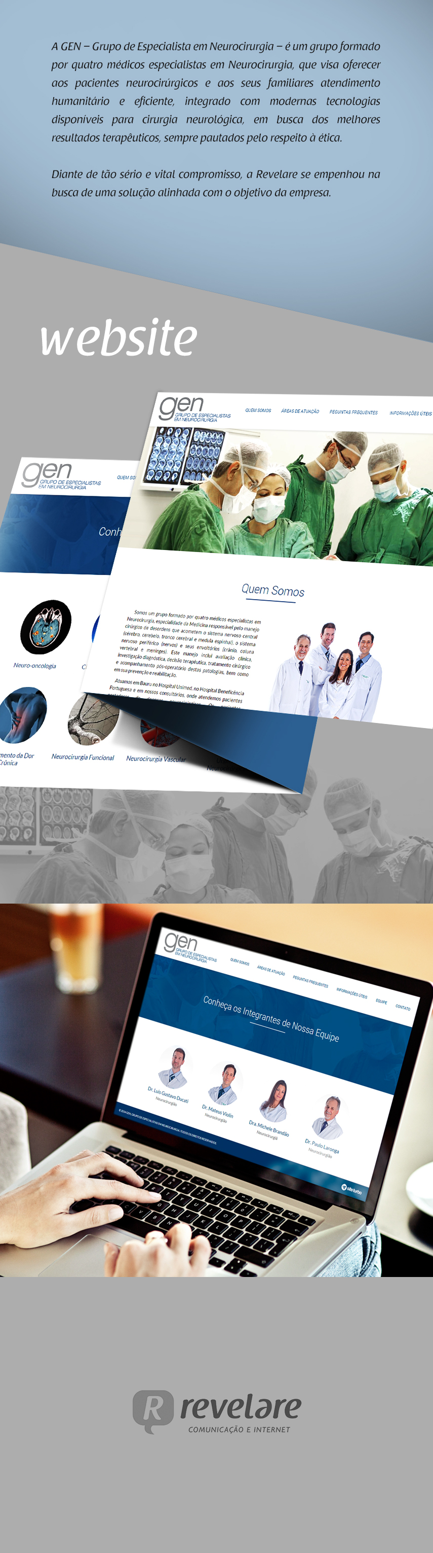 A GEN – Grupo de Especialista em Neurocirurgia – é um grupo formado por quatro médicos especialistas em Neurocirurgia, que visa oferecer aos pacientes neurocirúrgicos e aos seus familiares atendimento humanitário e eficiente, integrado com modernas tecnologias disponíveis para cirurgia neurológica, em busca dos melhores resultados terapêuticos, sempre pautados pelo respeito à ética.