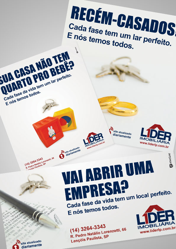 As peças mostram diversas fases da nossa vida, destacando que a Líder pode estar presente em cada uma delas, e podem ser vistas em jornais, revistas e painéis espalhados pela cidade do interior paulista. Confira algumas: