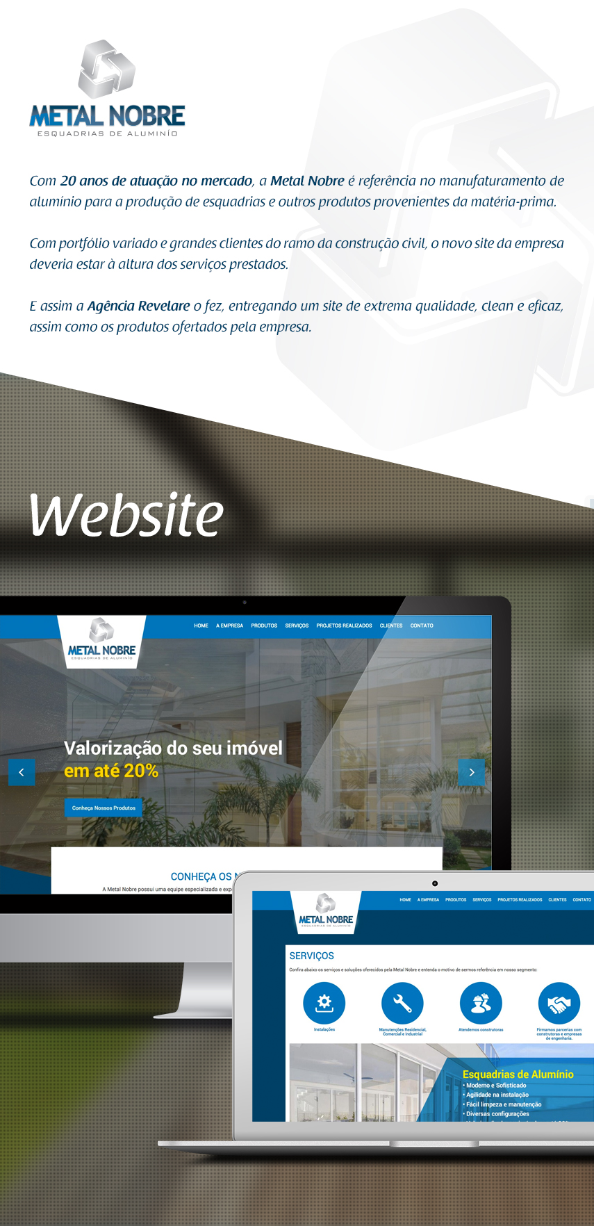 Foi esta excelência de produtos e soluções que a Agência Revelare tomou como ponto de partida para a realização do site da empresa. Como resultado, obtivemos um site elegante e extremamente funcional, extrapolando a expectativa tanto dos gestores da Metal Nobre quanto de seus clientes.