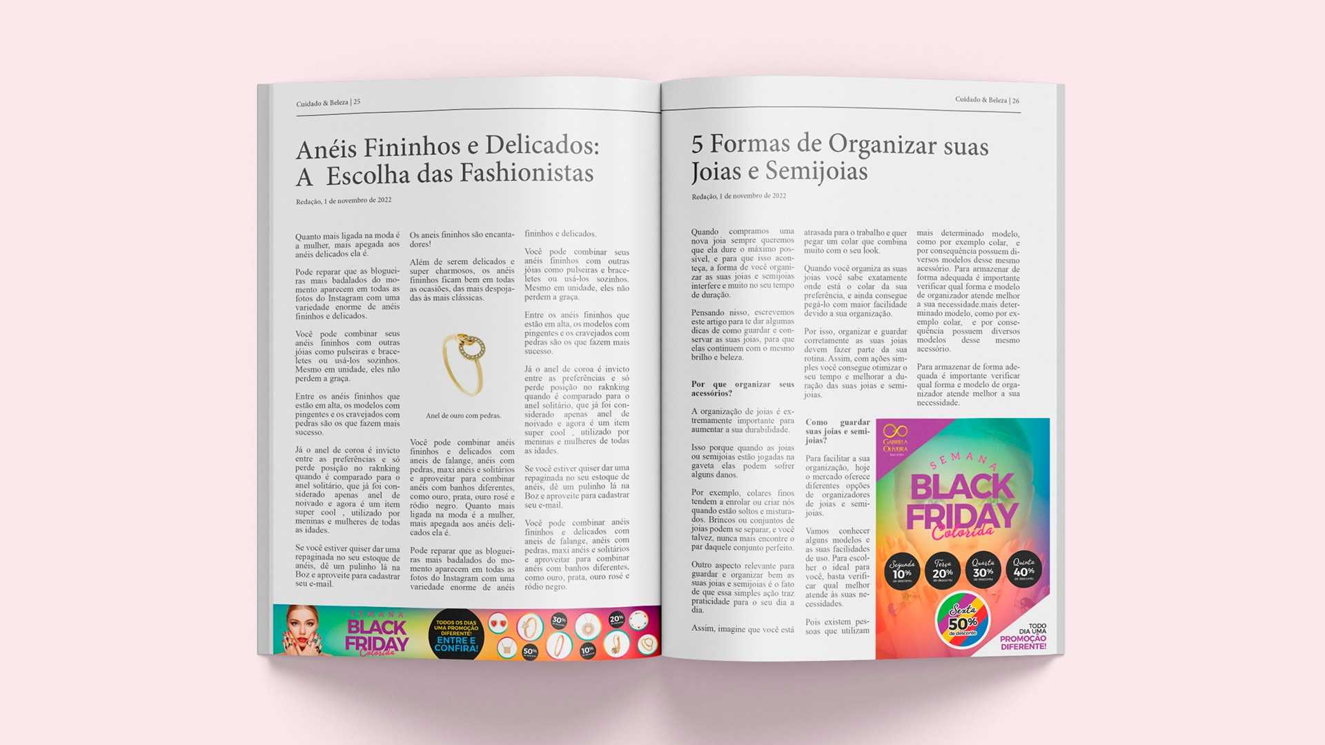 Conceito da campanha: cada dia da semana foi representado por uma cor específica. Essa paleta semanal deu direito a descontos exclusivos em semijoias com pedras correspondentes às tonalidades escolhidas. Os descontos eram de até 50% off.